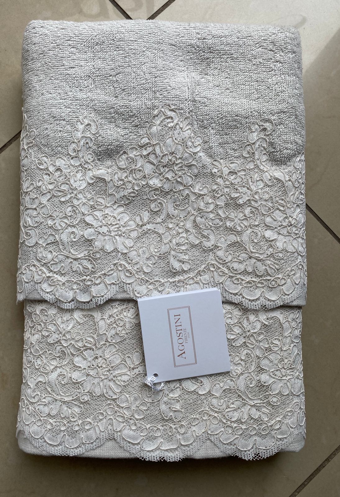Asciugamani 1 grande + 1 ospite in spugna e pizzo