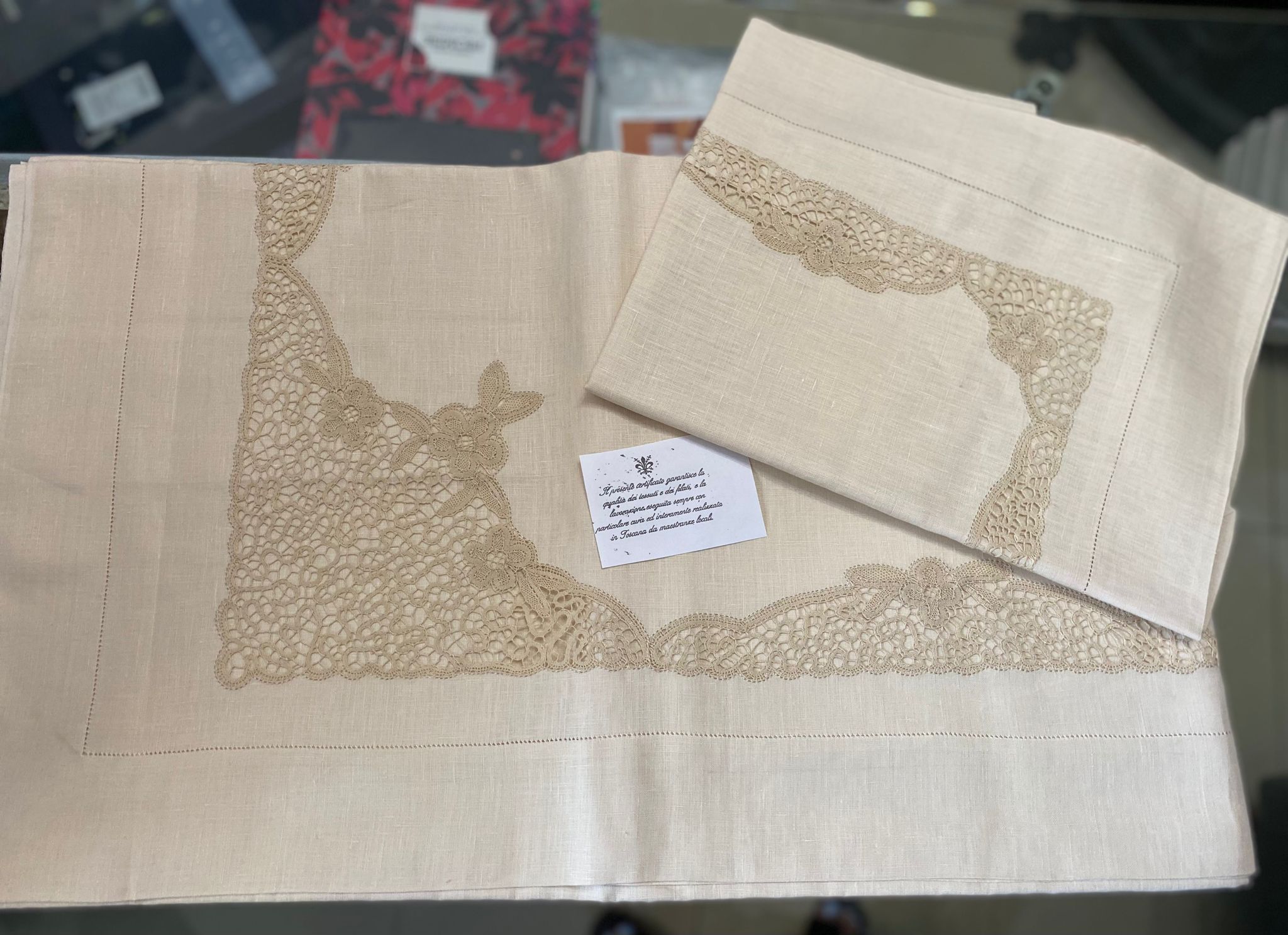 Lenzuola in puro lino e cantù ricamato