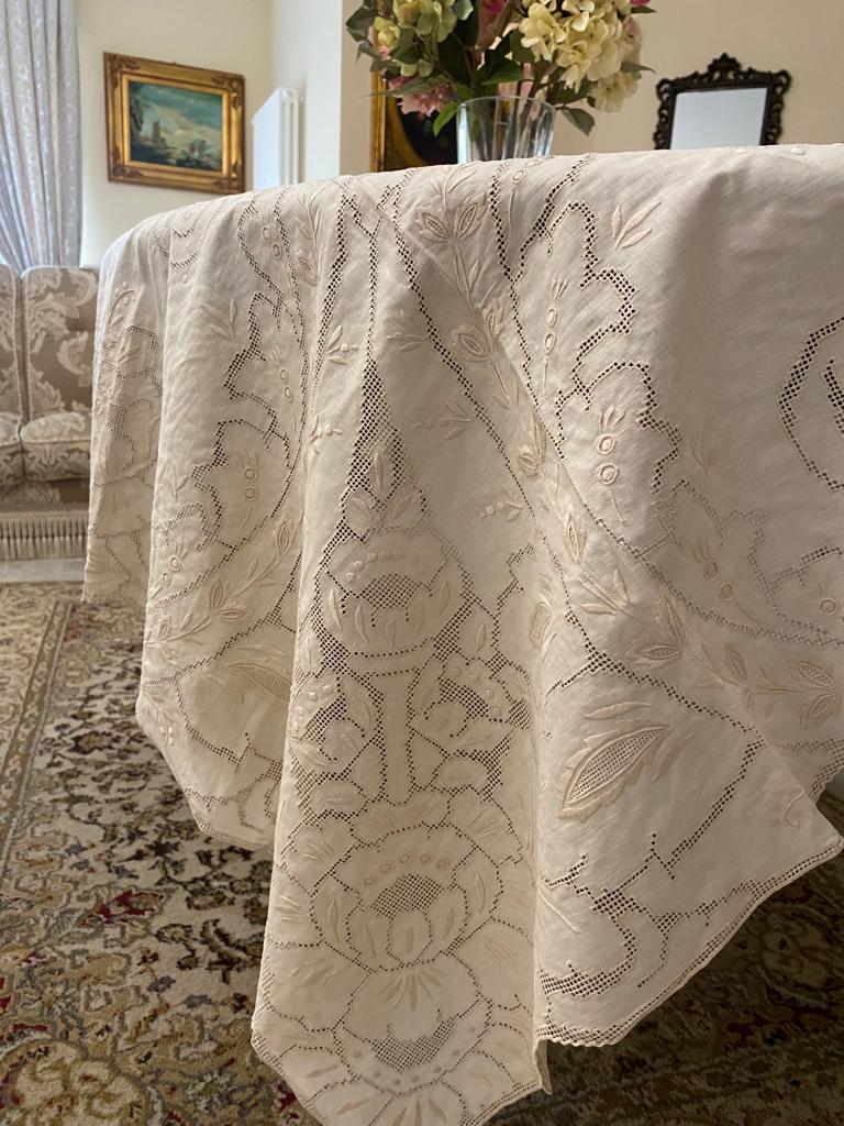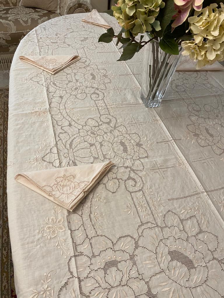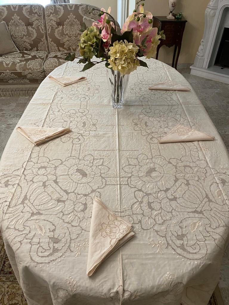 Tovaglia x12 con tovaglioli in puro lino sfilato écru