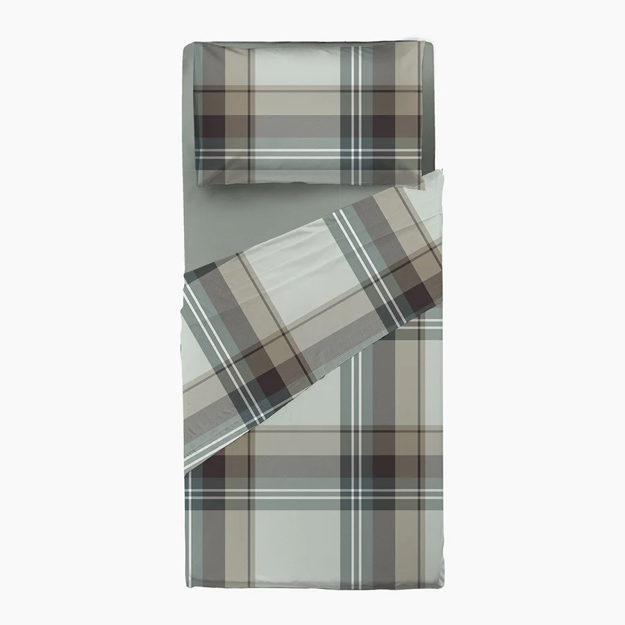 il completo letto a quadri con il caratteristico motivo madras a quadri policromi, delinea uno stile intramontabile nella collezione Di Maestro.