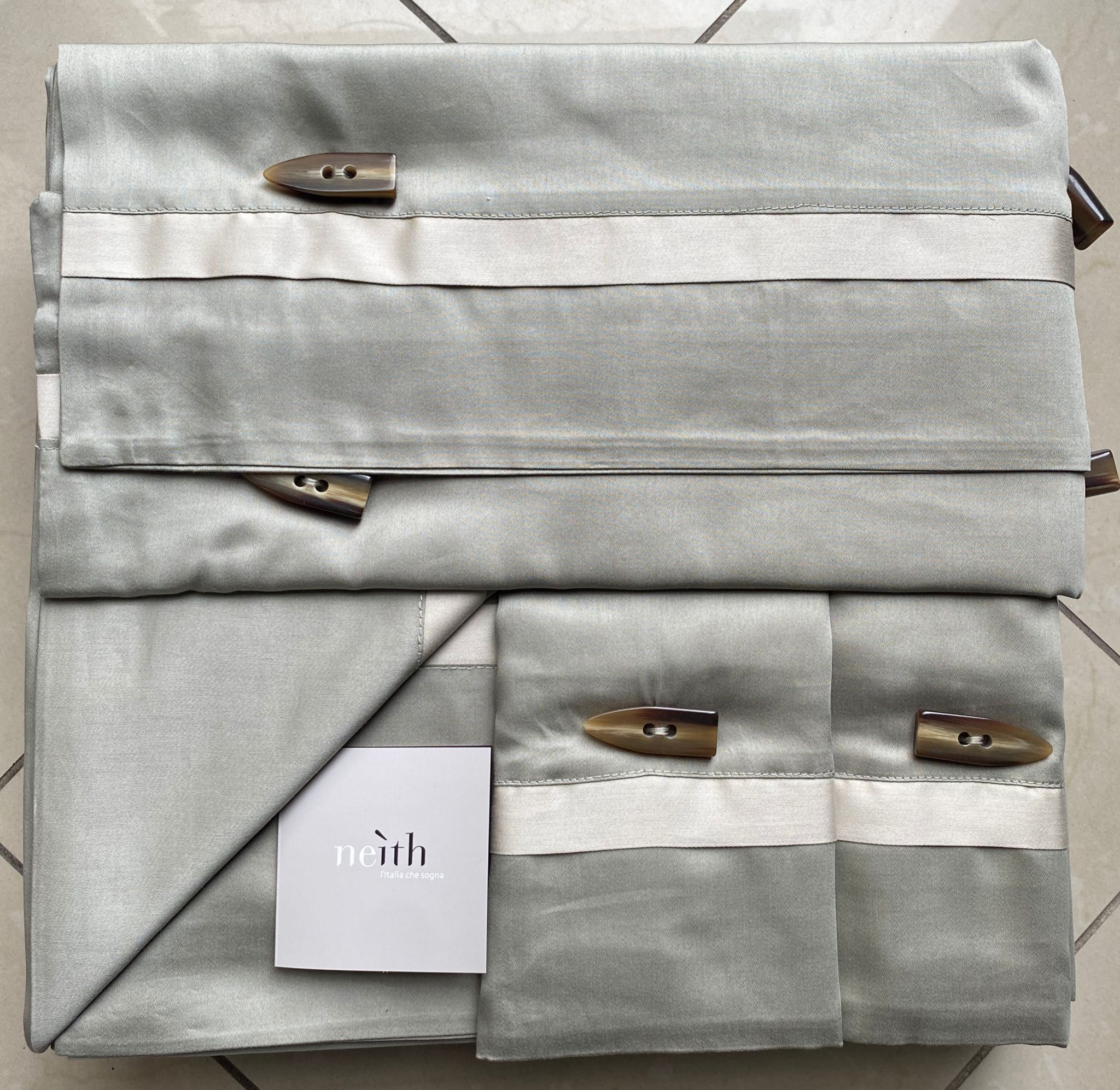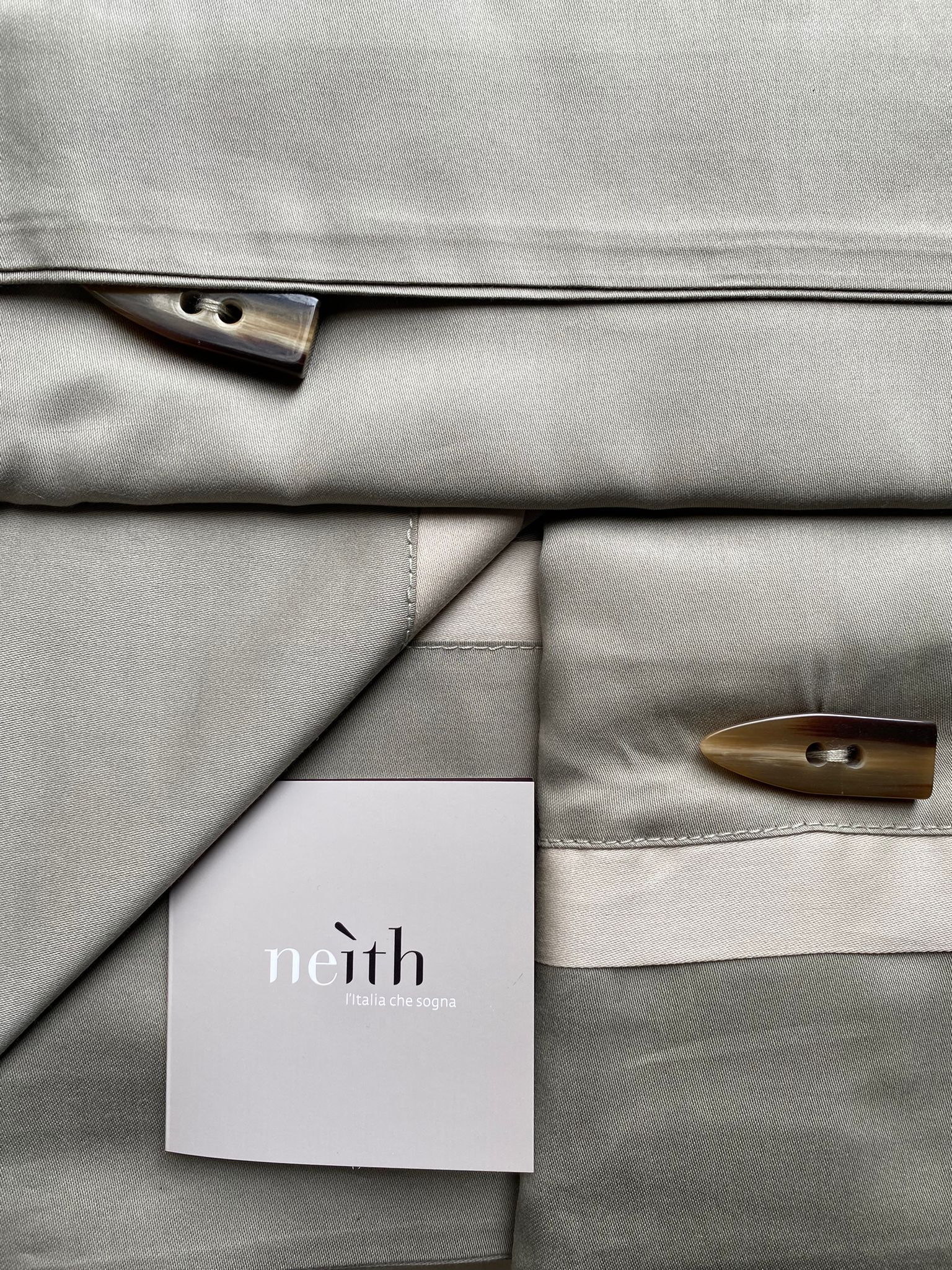 Lenzuola matrimoniale in raso di cotone con bottoni sulle federe